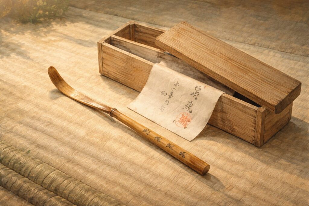 銘や落款は、茶道具の「作家の証」としての役割を果たします。樂吉左衛門や仁清といった名匠は、作品に独特の銘や落款を残しており、これがあるだけで茶道具の価値は大きく上昇します。