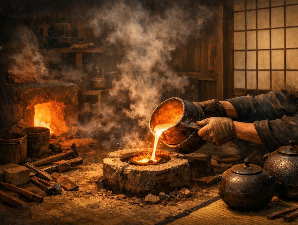 茶釜は、茶道具の中でも特に製造過程が重要なアイテムです。その製造技術は、長い年月を経て磨かれてきました。ここでは、茶釜に使用される金属や製造工程、伝統技術と現代技術の違いについて詳しく解説します。